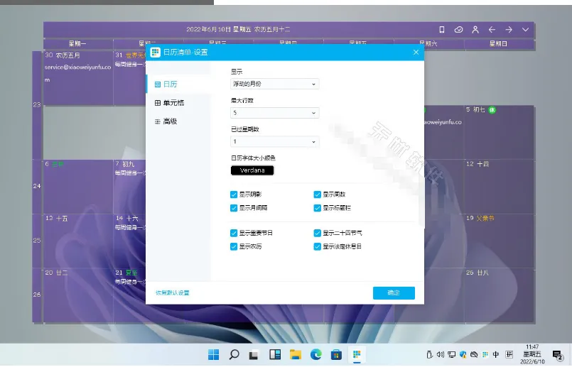 6、强大日历设置,可改变颜色、大小、显示行数等
