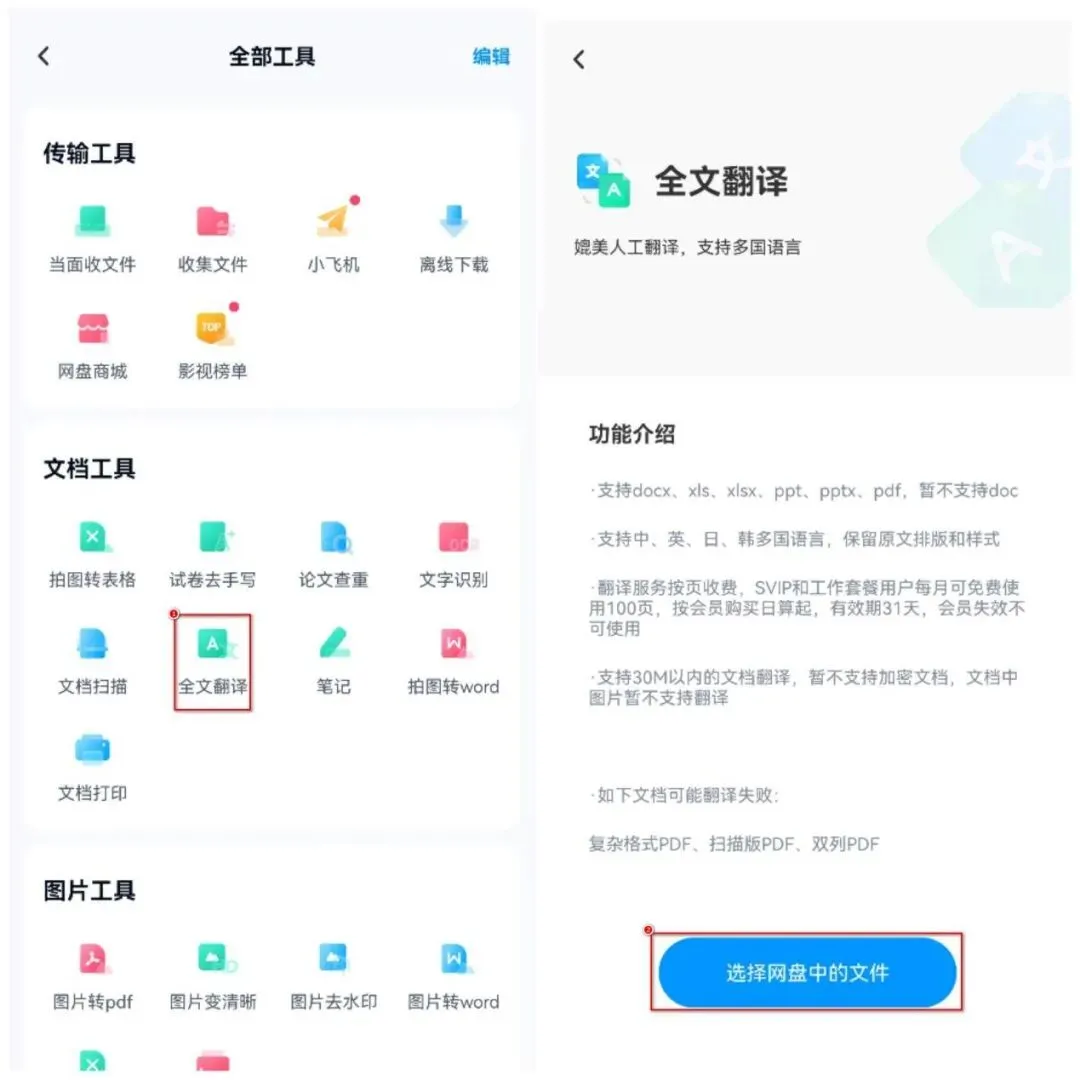 ☀软件介绍:这是一款云存储和文件共享软件,除了提供海量的存储空间外,还内置了全文翻译功能。大家可以在网盘中直接翻译存储在其中的文档。