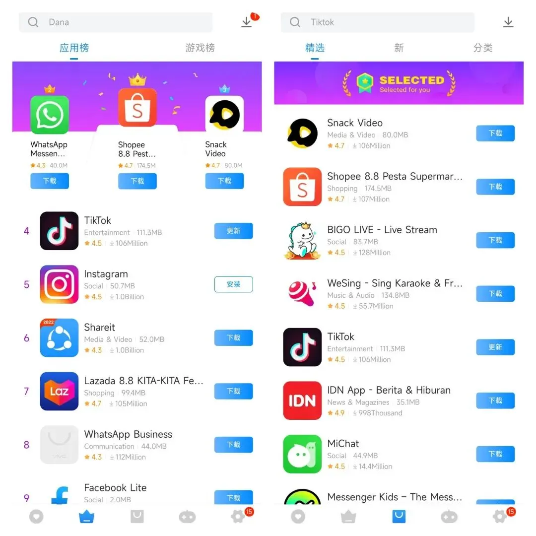 这两款软件都可以用来免翻下载国外软件,无需登录,直接下载或者更新手机里已有的国外app,下载安装即可立马使用。而且完全免费下载,还还可以看到软件下载的排行榜,热度榜。