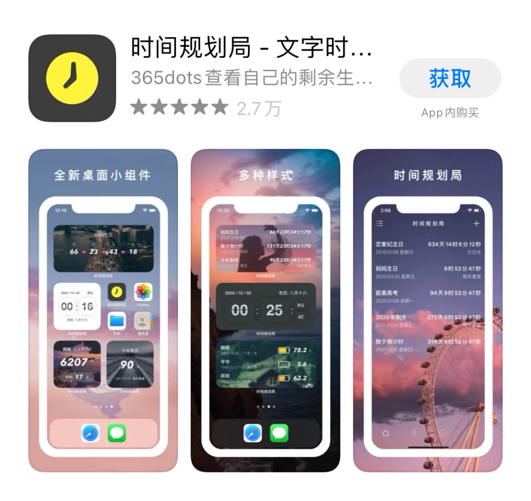 一款特别的/能全面适配iOS14的桌面小组件App,纪念日提示、生命之钟、年度电量等倒计时功能非常有趣,还能自定义设置背景色以及小组件效果,还是挺好玩的。