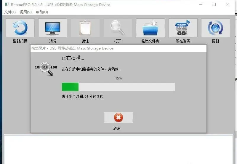 3. 等待闪迪U盘修复工具软件为我们自动搜索所有的已经删除的照片文件,如下图所示。
