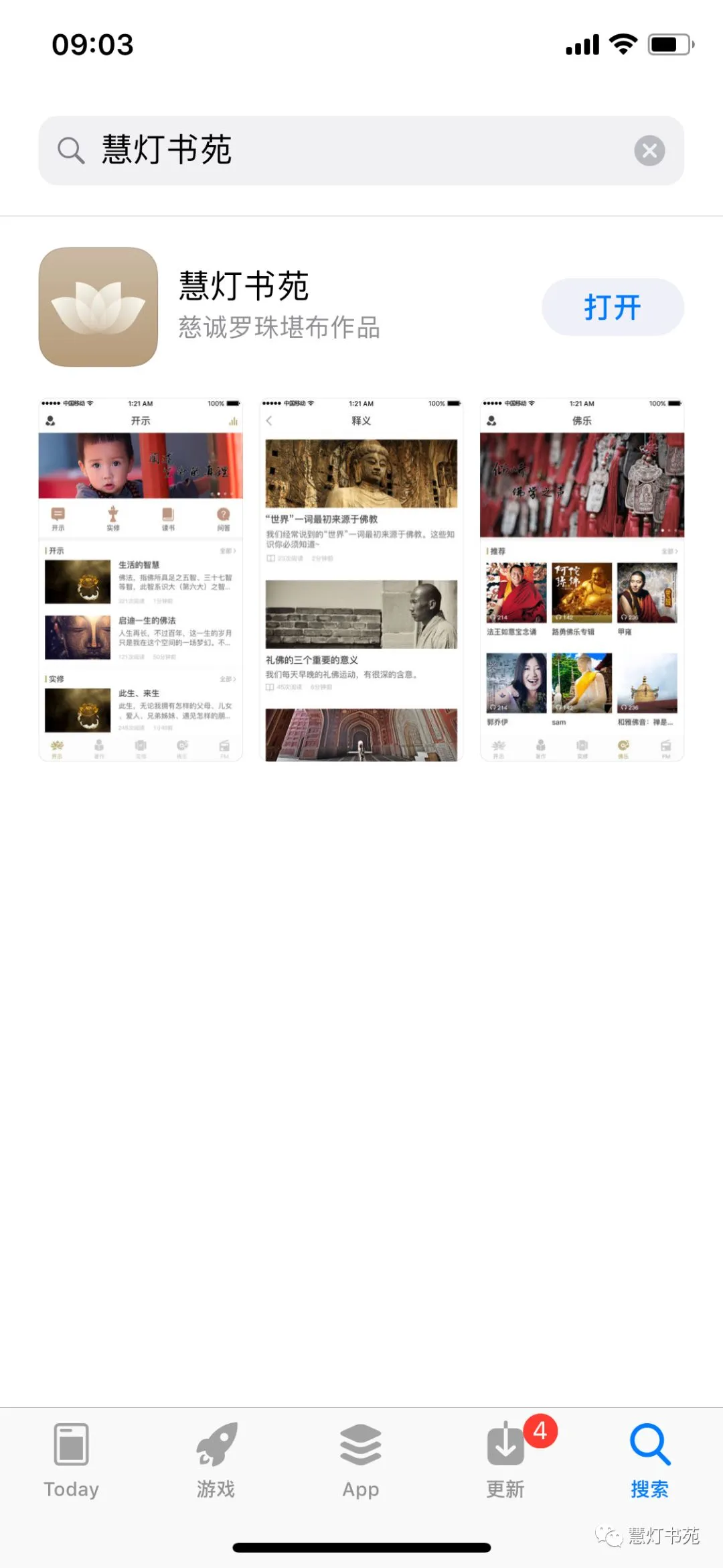 经上师慈诚罗珠堪布开许,慈诚罗珠堪布著作手机app软件苹果版和安卓版现已上线。苹果用户在App store搜索“慧灯书苑”便可下载,安卓用户请在手机下载客户端搜“慧灯书苑”进行下载。