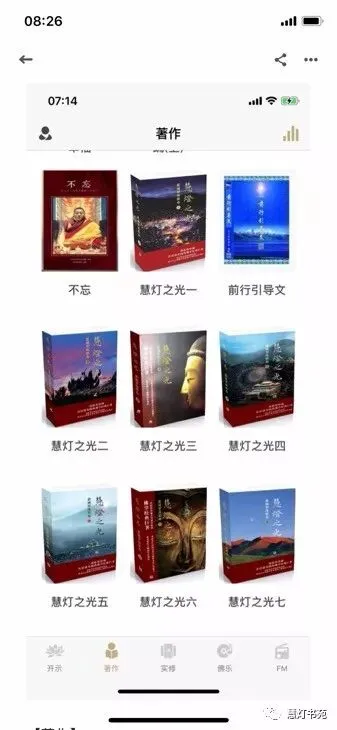 点开【著作】的版块,上师仁波切的著作有《慧灯之光》1-8(还在更新中)、《我们为何不幸福》、《生命的真相》、《嘱托》,其他经典作品陆续更新中。
