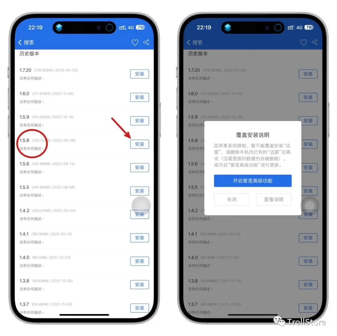 今天来说说如果你的手机系统是高版本,不支持TrollStore 巨魔商店,那么该如何给手机app降级方法!