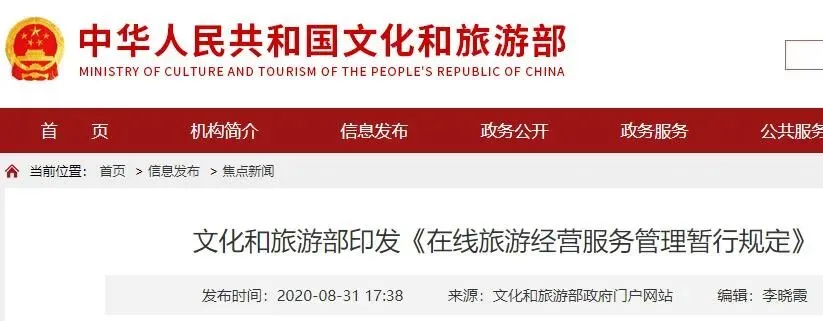 8月31日,文化和旅游部公布《在线旅游经营服务管理暂行规定》,将于2020年10月1日起正式施行。规定要求,在线旅游经营者不得滥用大数据分析等技术手段,基于旅游者消费记录、旅游偏好等设置不公平的交易条件,侵犯旅游者合法权益。