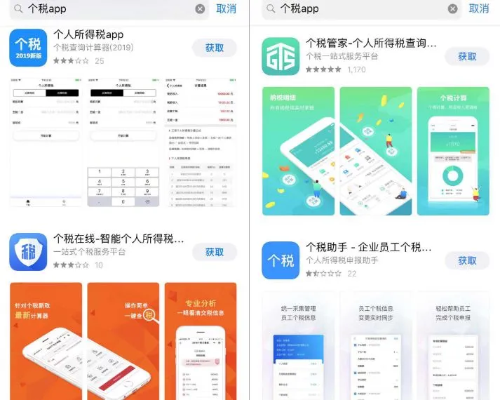 记者从手机软件商店里输入“个人所得税”后搜索发现,除了国税总局版的APP外,还有“全国个税计算器”、“全国个税查询”、“个税小帮手”、“个税管家”、“个人所得税计算器”、“新个税计算器”、“个税助手”、“个税在线”等一大批与计算个税相关的软件。