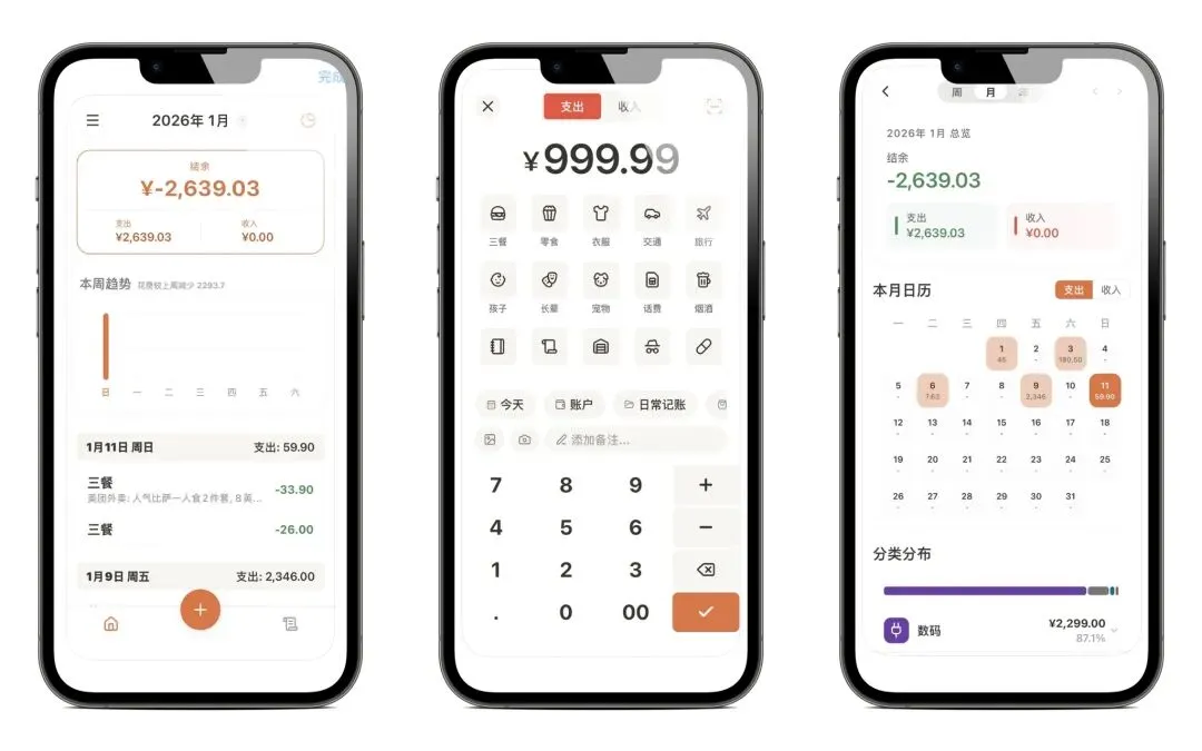 今日新上架的记账APP,无内含、无广,页面简约,记账分类全面,有需要的可以下载使用!