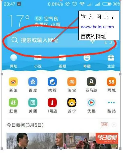 点开手机“浏览器”(浏览器手机会自带,或有第三方百度浏览器、UC浏览器、QQ浏览器、搜狗浏览器、360浏览器等等)