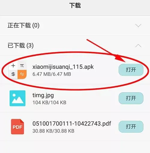 “小米计算器”APP正在下载或已下载完毕,点打开。