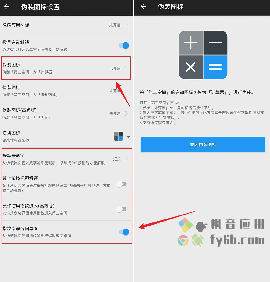 你可以将该软件伪装为“计算器”,名字和图标都能换,想要通过伪装界面就需要点击标题、等号,或者通过指纹进入。