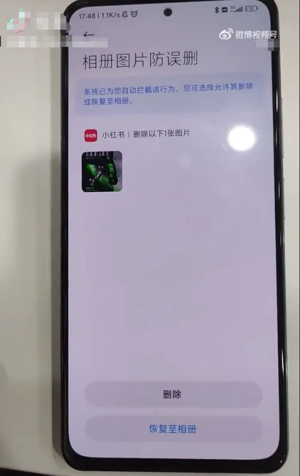 近日,网友发布视频称,使用小红书 APP 时发现,后台删除自己手机里的相册照片,被手机系统拦截。该网友称:恰好拍到了,下拉菜单栏的时候发现有这个通知。提醒大家要多多注意隐私。