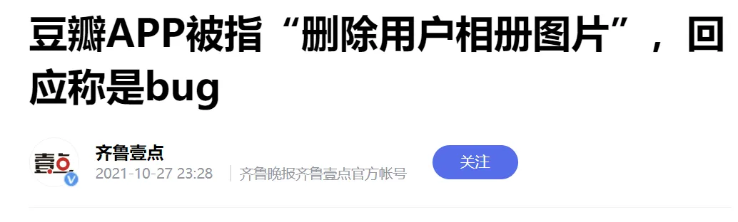 2021年10月,有网友曝出华为手机提示豆瓣 App 删除其手机相册图片。