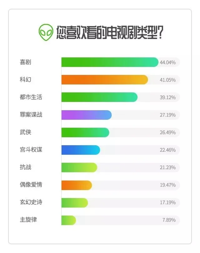 大家观看的内容口味变得越来越多元化。其中喜剧、科幻和都市生活成为大家观看三种主要类型。随着都市工作压力增加,下班后工薪族需要释放空间和舒压时间。这也体现在大家对喜剧类型钟爱有加的原因,而科幻类型也是男性用户倾向性较高的类型。