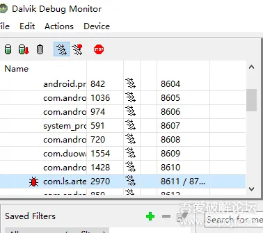 启动后需要打开ddms,或者通过adb shell ps查看进程号,方便起见直接ddms