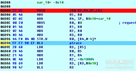 之间静态看代码时已经看到函数首选会ptrace进程,不去除的话我们将无法调试,直接NOP掉