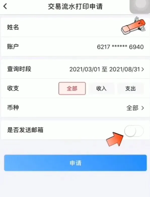 登录【邮储手机银行 APP】,点击首页【全部】→ 选择【账户】→【账户明细打印】;