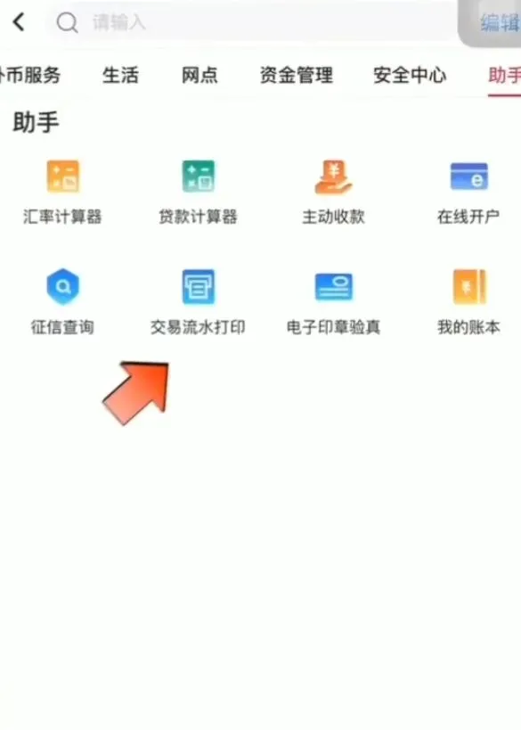 下载登录【浦发银行 APP】,搜索框输入【打印交易流水】;