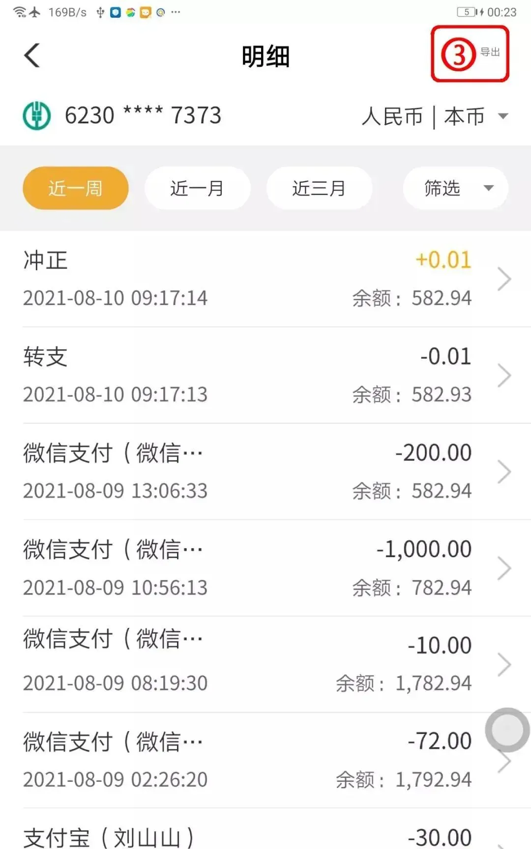 选择【收支账单】→ 右上角【下载交易流水】;