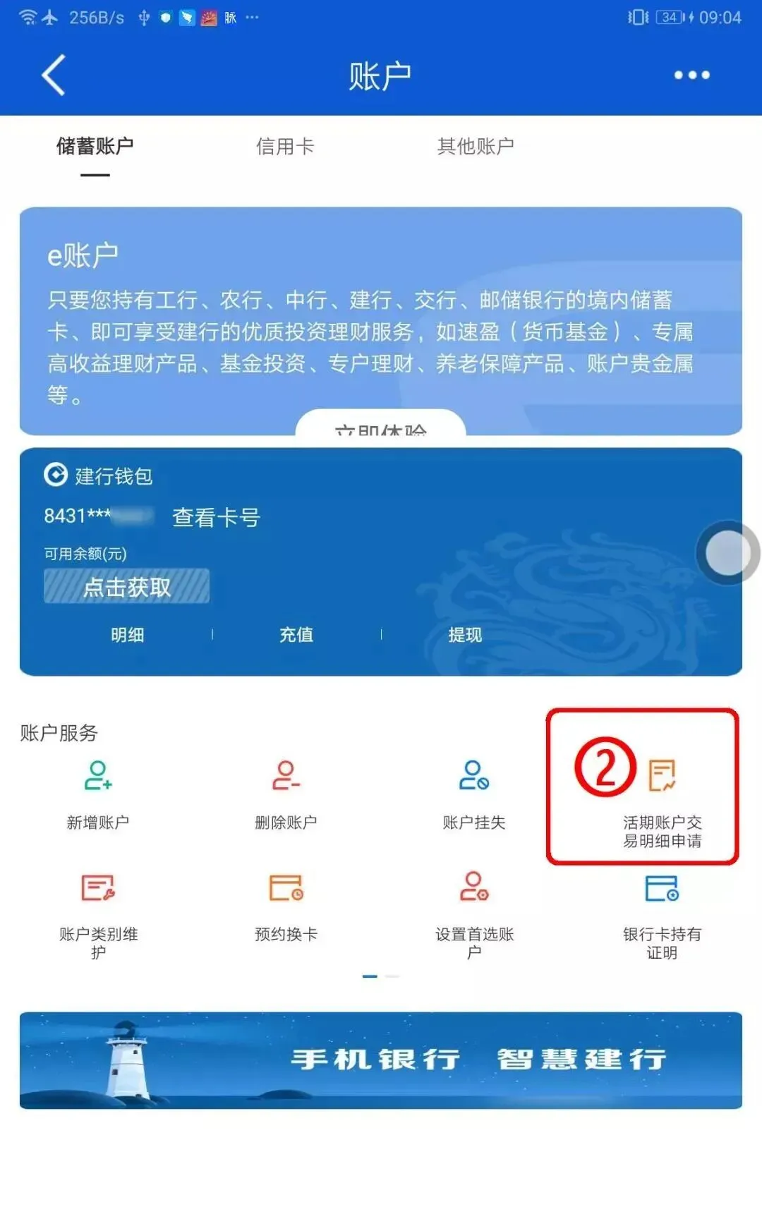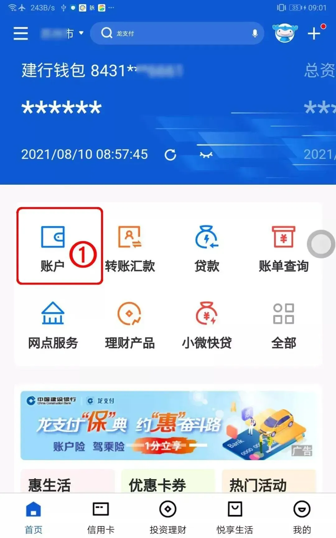 打开【建设银行APP】,点击【账户】