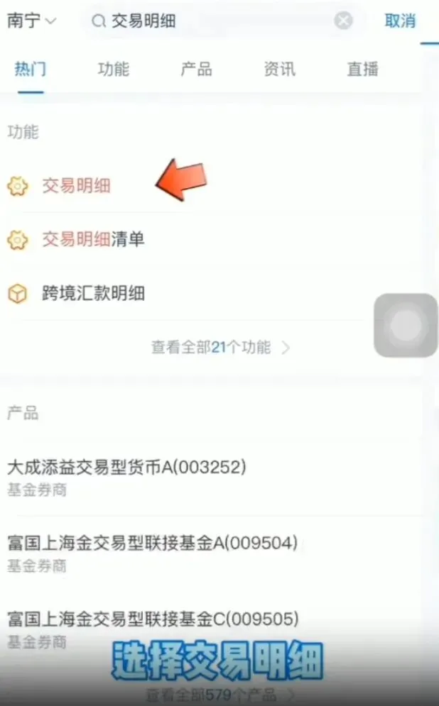 搜索栏搜索【交易明细】
