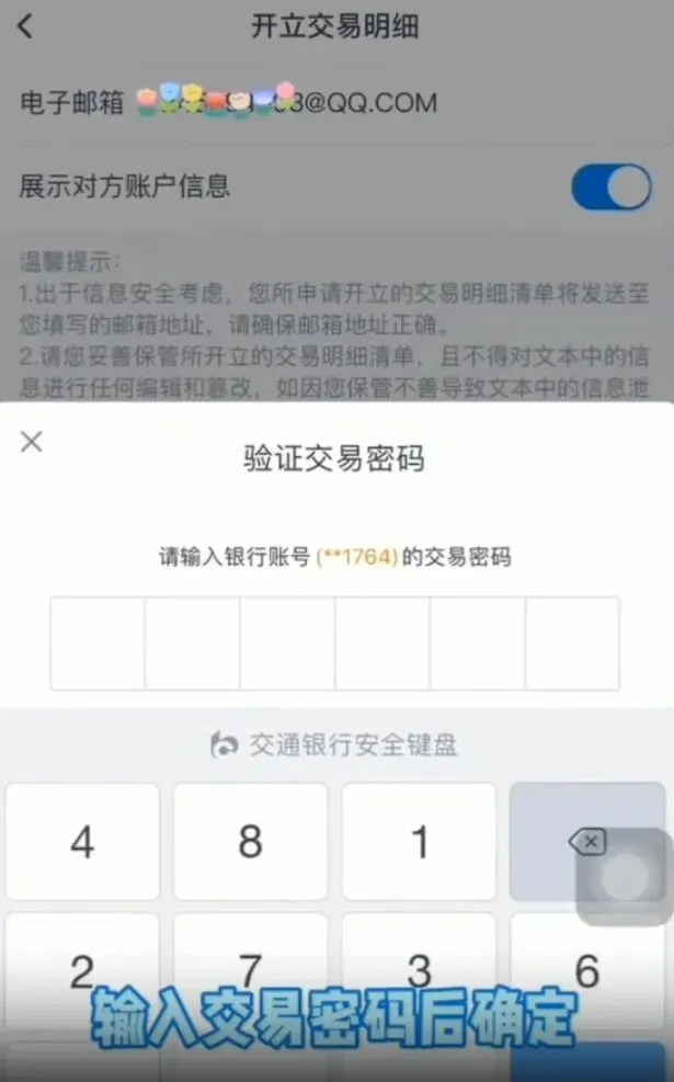 选择【邮箱发送】,填写收件邮箱,输入交易密码点击【确认】;
