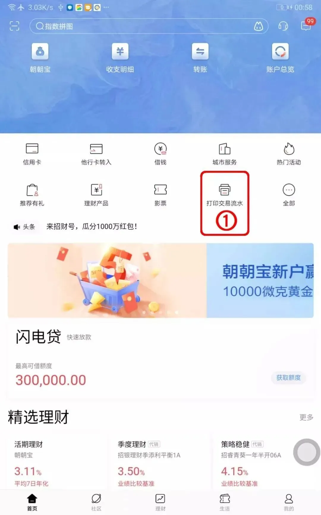 打开【招商银行APP】,点击【打印交易流水】