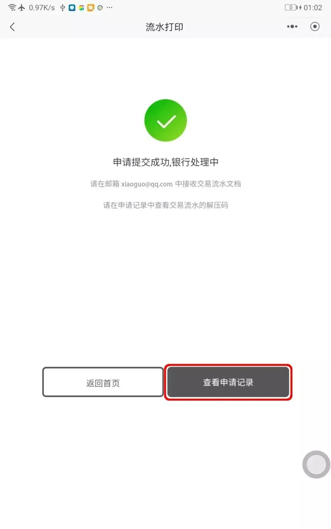 申请成功后点击【查看申请记录】,跟踪进度。