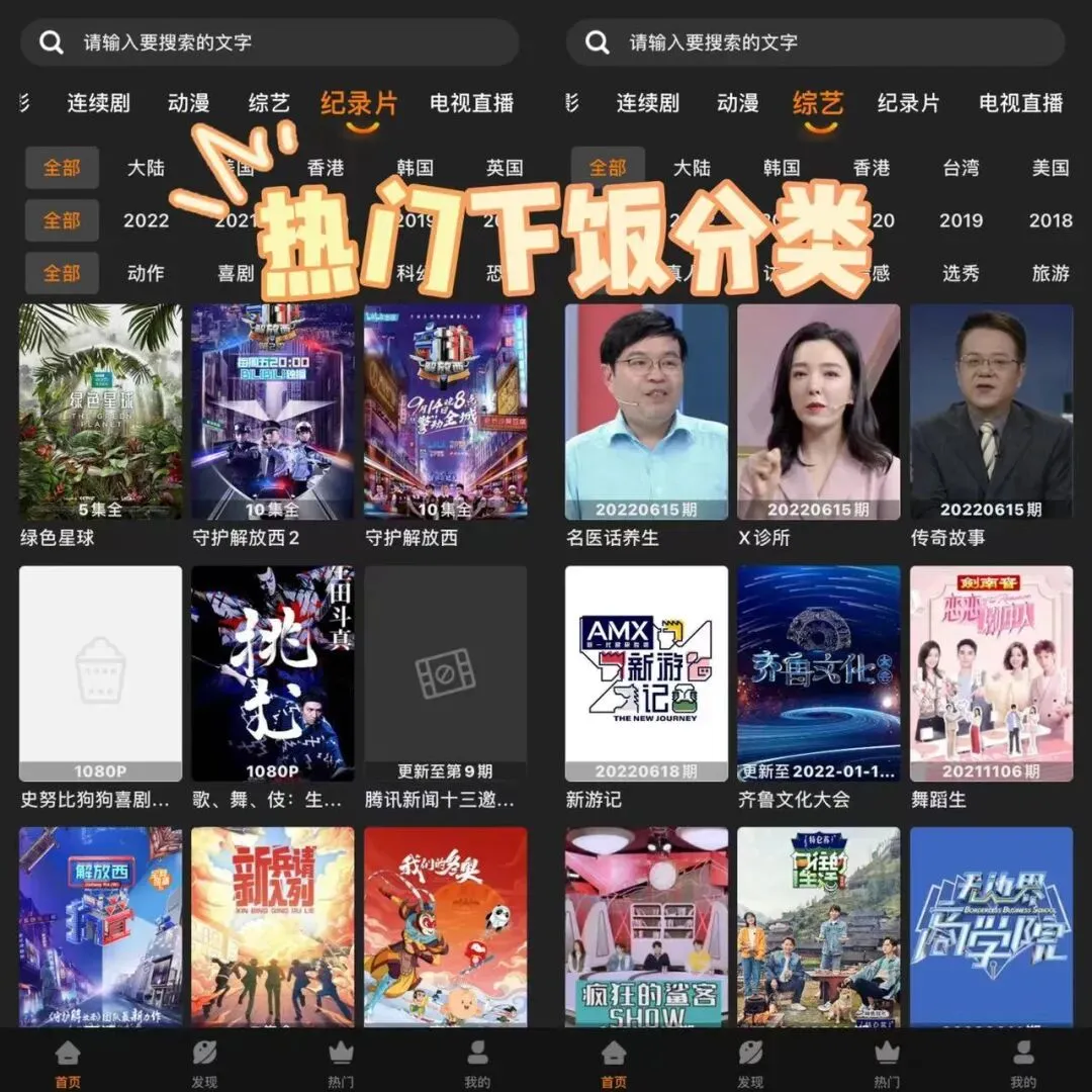 下饭必备的综艺节目和纪录片也有,基本都是同步更新的,省了不少开会员的钱~