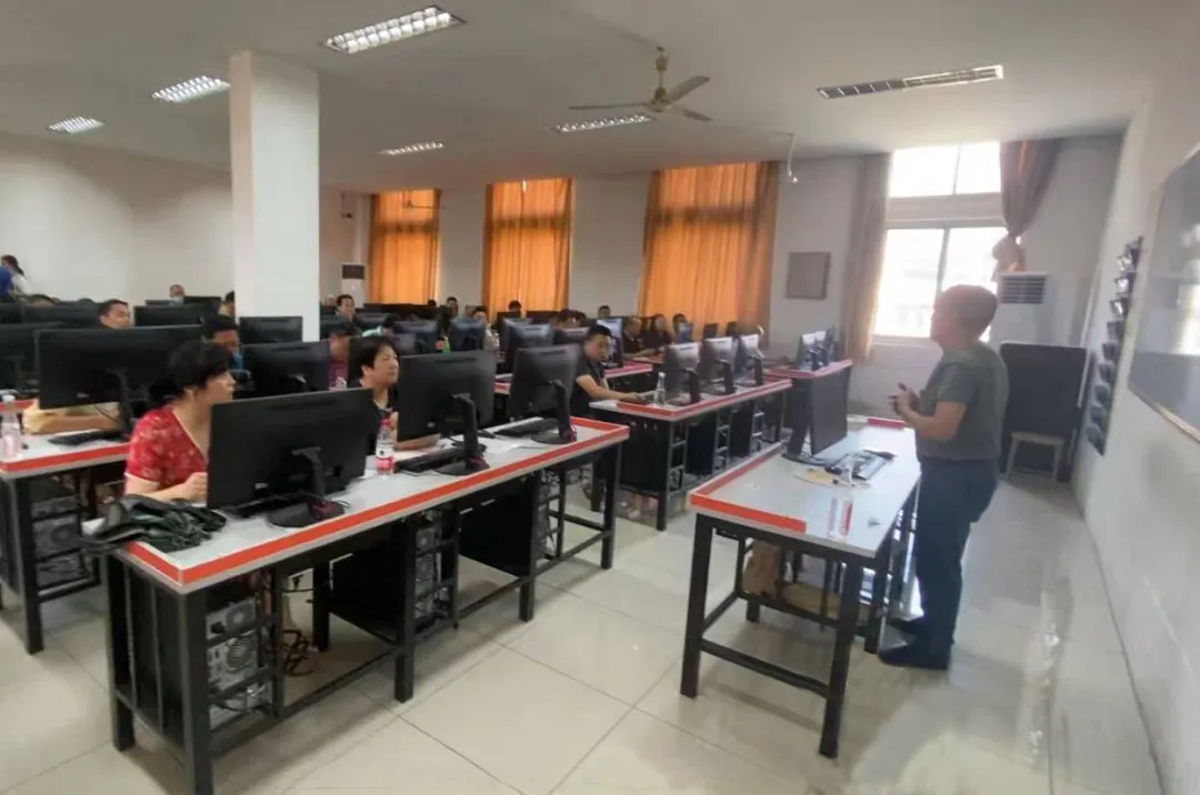 开班仪式后,我院计算机教研组组长应振潭老师先向大家介绍了办公软件的基本功能、日常操作方式和技巧。课上,应老师的讲授深入浅出,易于理解。参训人员专注聆听讲课,认真做笔记,学习氛围浓厚。