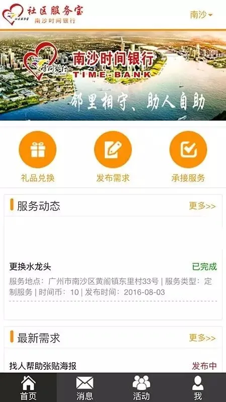 【创新】去手机应用商店下载“南沙时间银行”APP 吧~