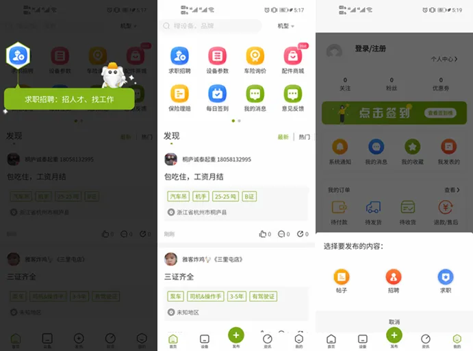 升级版求职招聘功能,在深入了解用户需求后,研发团队进行了更人性化、专业化的设计,一键筛选地区,每天上万条信息不断更新,不管是老板找机手,还是机手找老板,都能够助您轻松找到心仪的工作和人才!千万同行都在用!