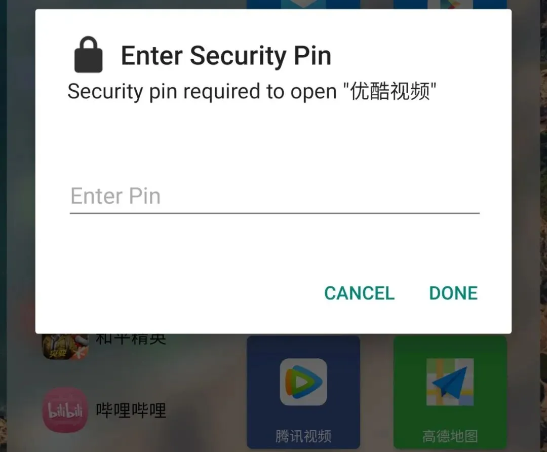 锁定的应用需使用锁屏密码打开,隐藏的应用则需在设置中显示。