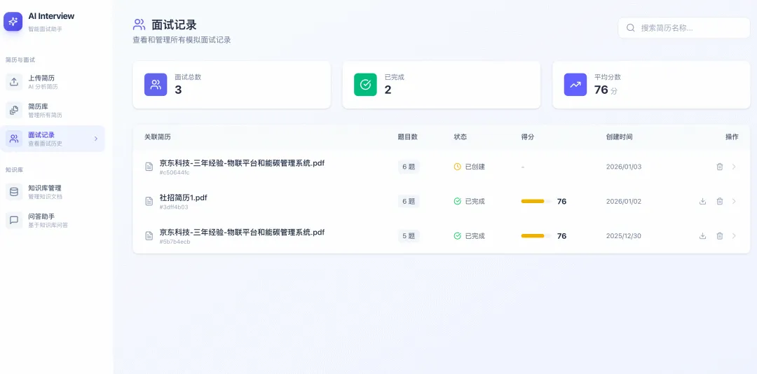 - 实时问答交互与面试表现评分(趋势展示)