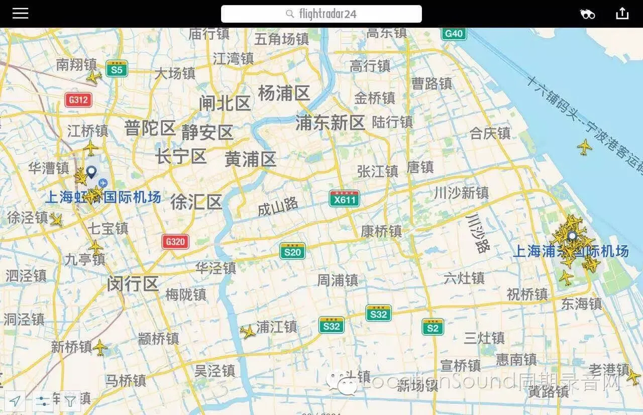 上海地区的飞机实时情况。