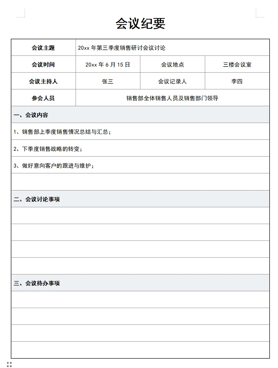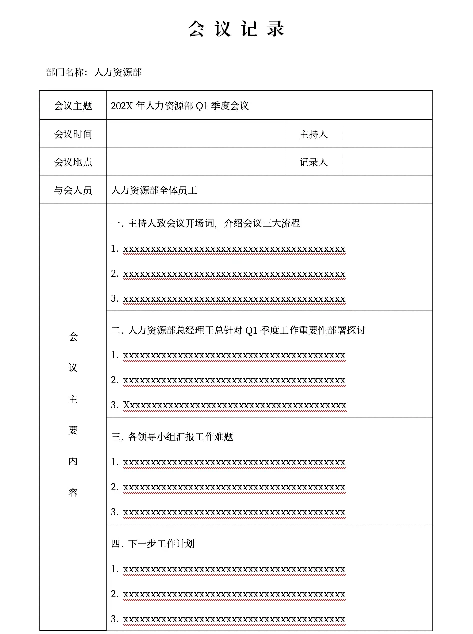 会议记录会议纪要电子版各种模板(word可编辑/免费下载打印)