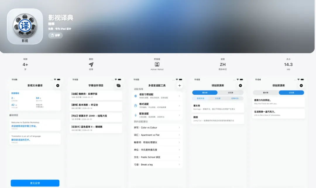 App Store 链接:https://apps.apple.com/cn/app/%E5%BD%B1%E8%A7%86%E8%AF%91%E5%85%B8/id6757948826