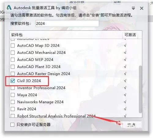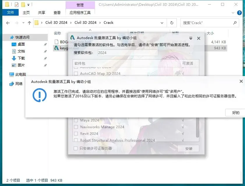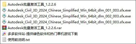 1、下载解压,得到autodesk civil 3d 2024简体中文版,以及Autodesk批量激活工具;