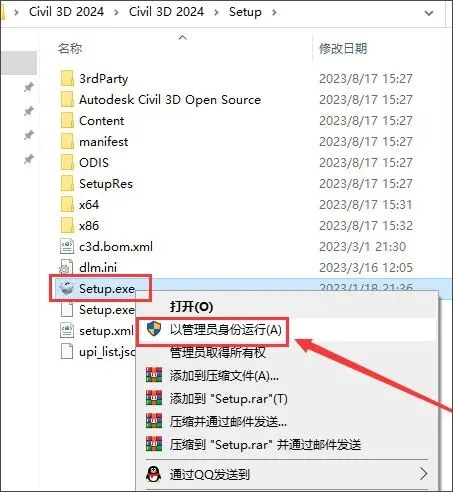 3、解压后,找到Setup.exe安装程序,鼠标右键以管理员身份运行;