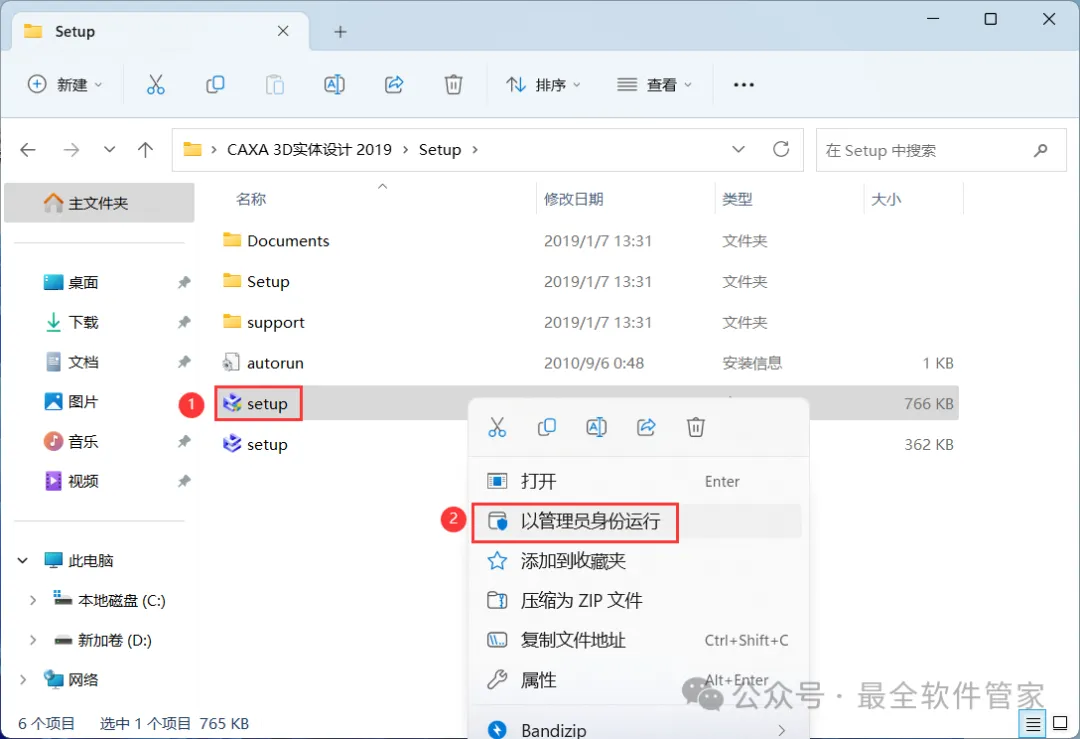 4、找到【setup】应用程序,右键选择【以管理员身份运行】它