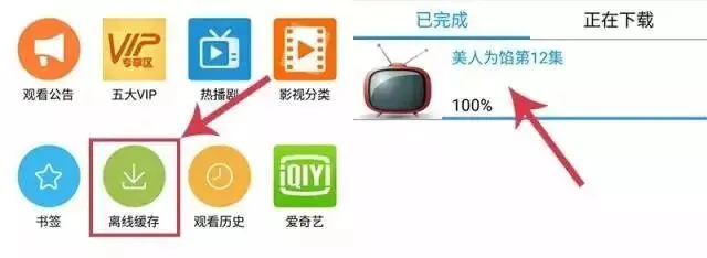 想看的时候在主页的离线缓存里就可以免流量观看了。