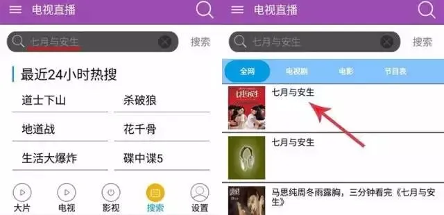 在搜索框输入电影名,直接搜索,挑选一个资源,顺利播放~
