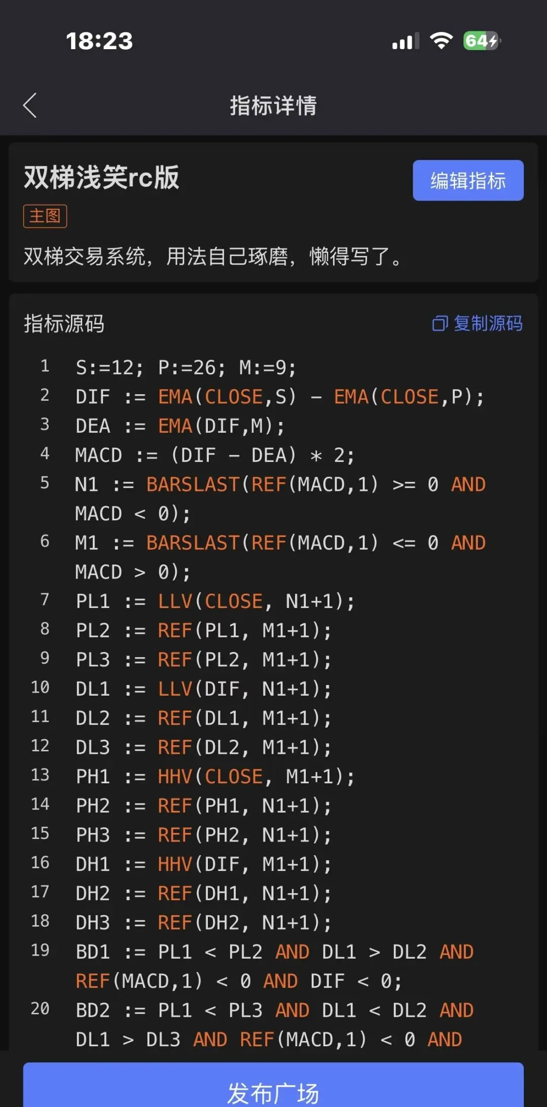 珍藏源码:双梯主图信号指标源码