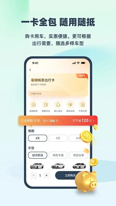 分时租赁+手机自助,省钱省心区别于传统租车,它是移动互联网新型模式:分时租赁按分钟计费,每分钟低至0.5元起,薅羊毛式便宜!全程手机自助订车、取车、用车、还车,操作丝滑不排队,亲测取还车秒搞定,比传统租车省心十倍。短时短途出行绝配,尤其去机场、园区、校园、CBD,灵活又划算。