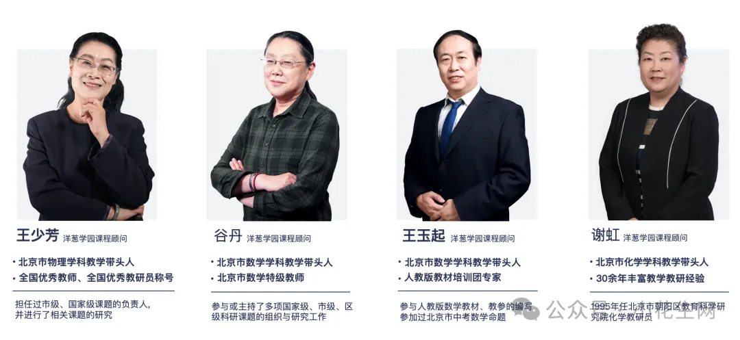 给大家看一下洋葱的专家团队,比如,王玉起老师,王少芳老师,谷丹老师等,他们曾经都是中高考命题人,以及从事40多年的老教研员。