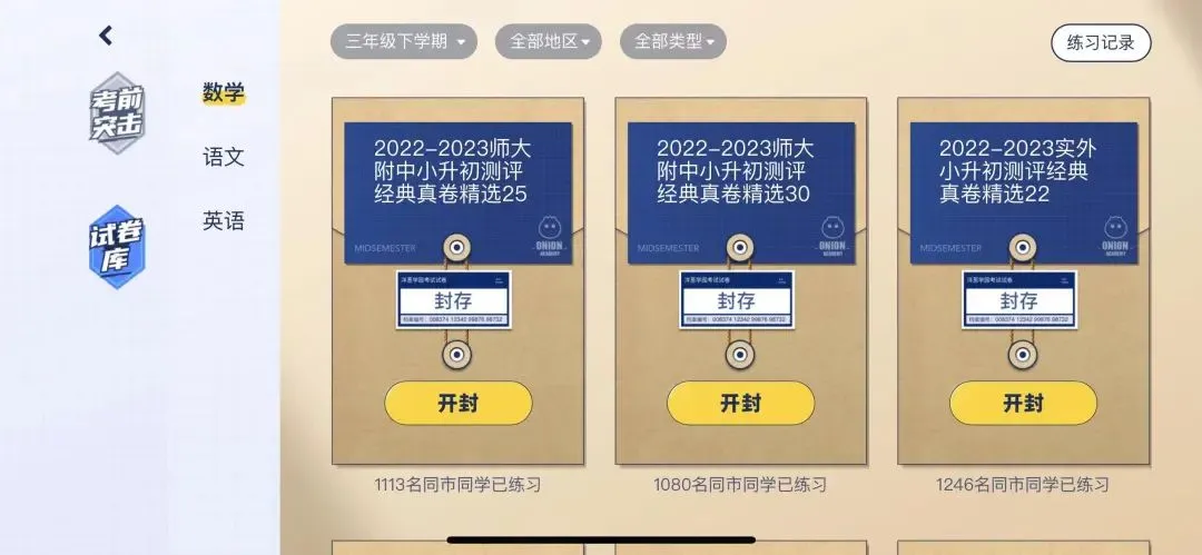 除了配套教材的学习课程之外,洋葱学园还提供了大量题库让孩子练习。