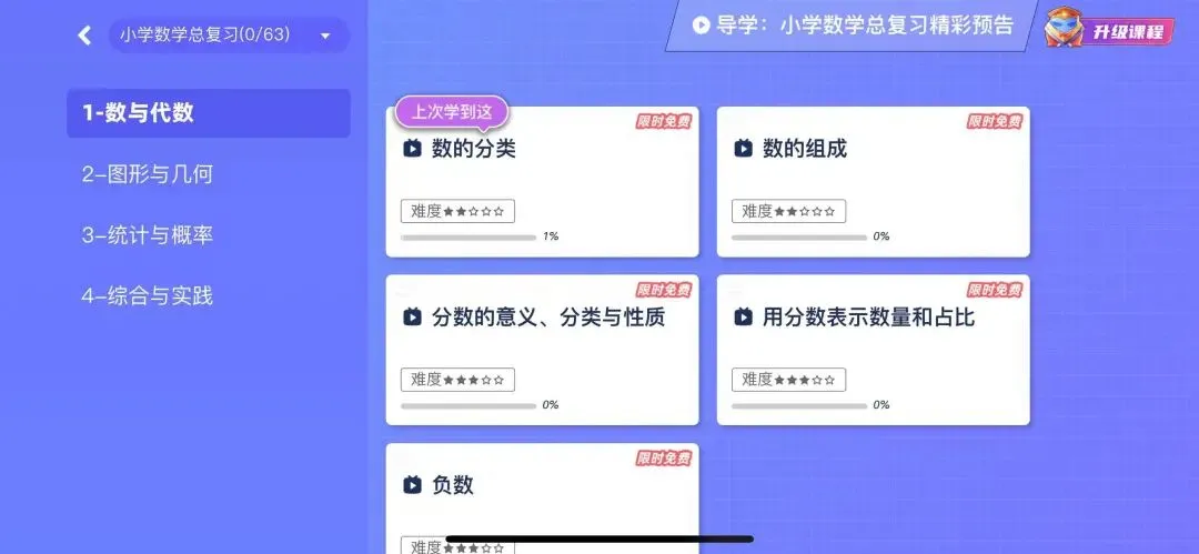 建议入手小学全科4年卡,有幼小衔接(启蒙板块),也有小学一到六年级的全部课程内容,现在买4年送2年,直接管到小学毕业。