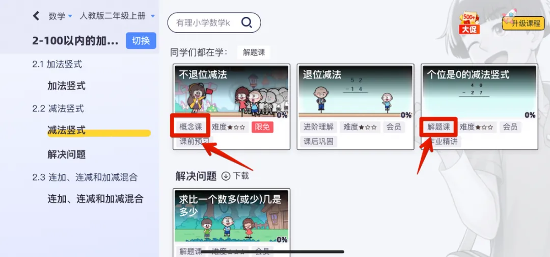 进入后,我们可以切换对应章节,都会配有概念课,还有的是解题课,两种模式。