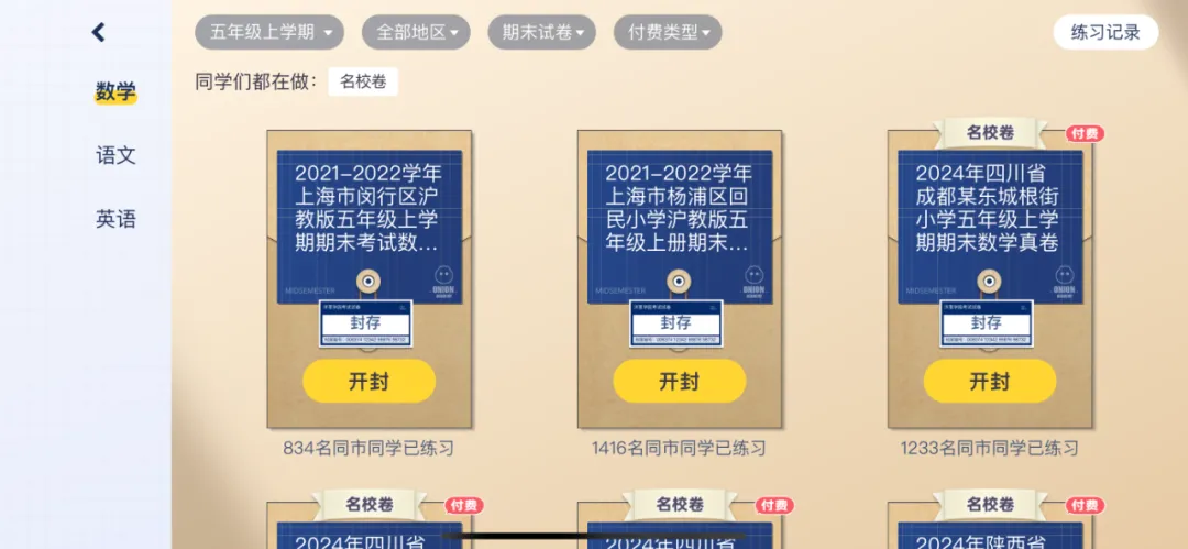 试卷库板块,收录了很多名校的期中期末考试真题。