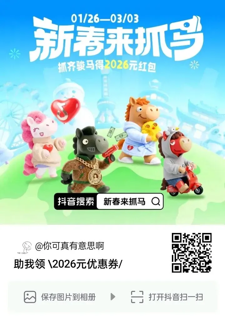 抖音:现在已经开始的活动,抓马能给团购优惠券,进去搜新春来抓马就可以,不会的直接截图保存,扫码进就行