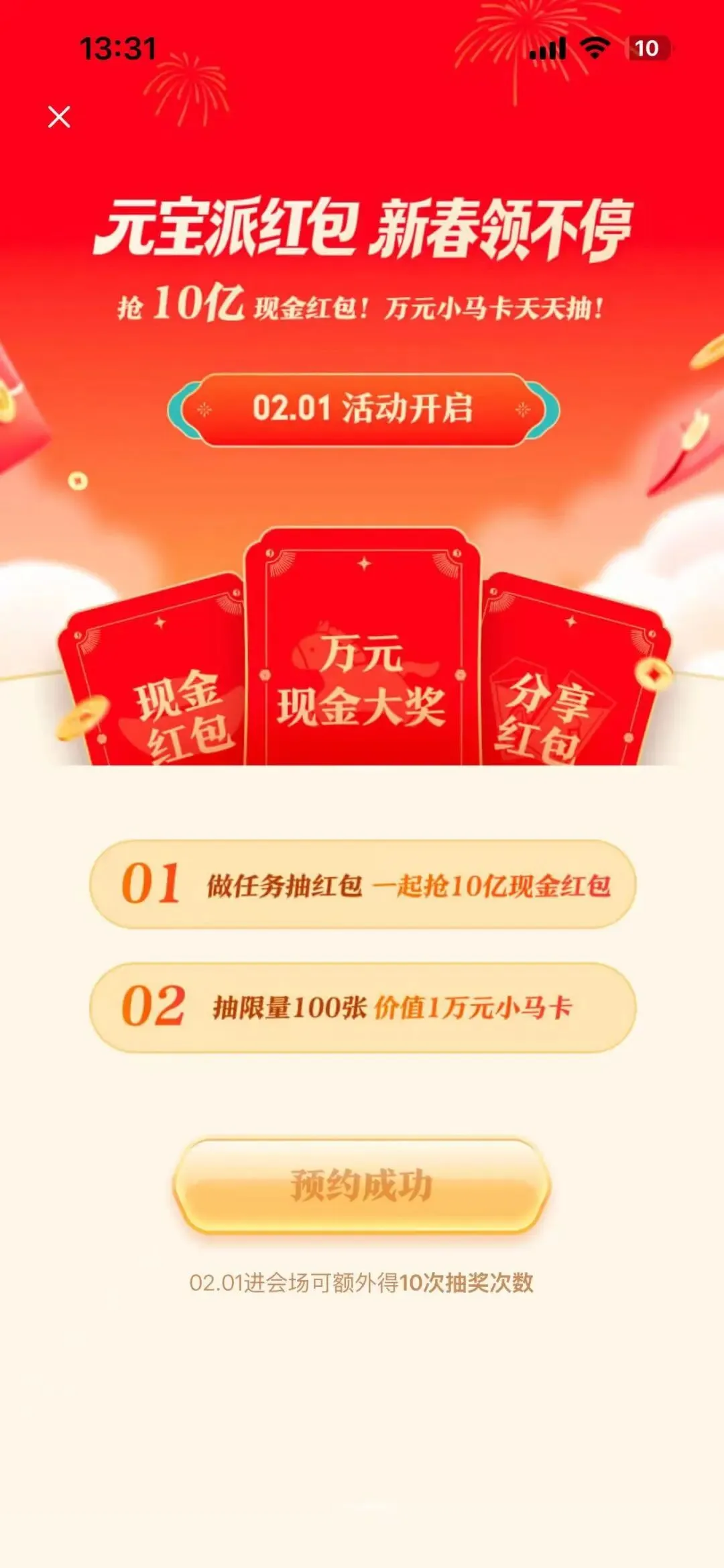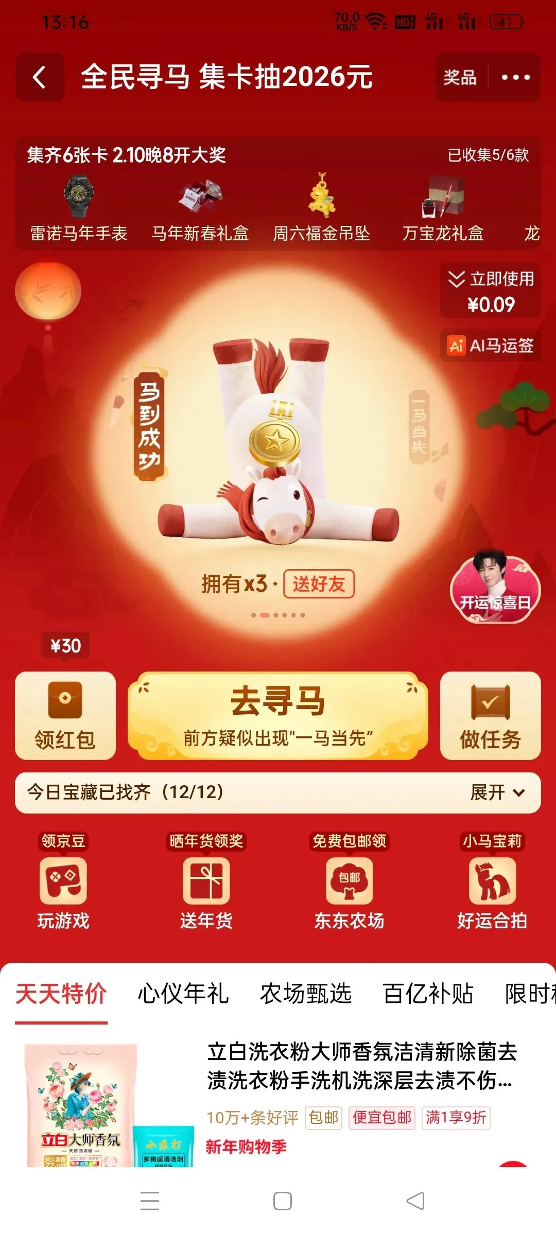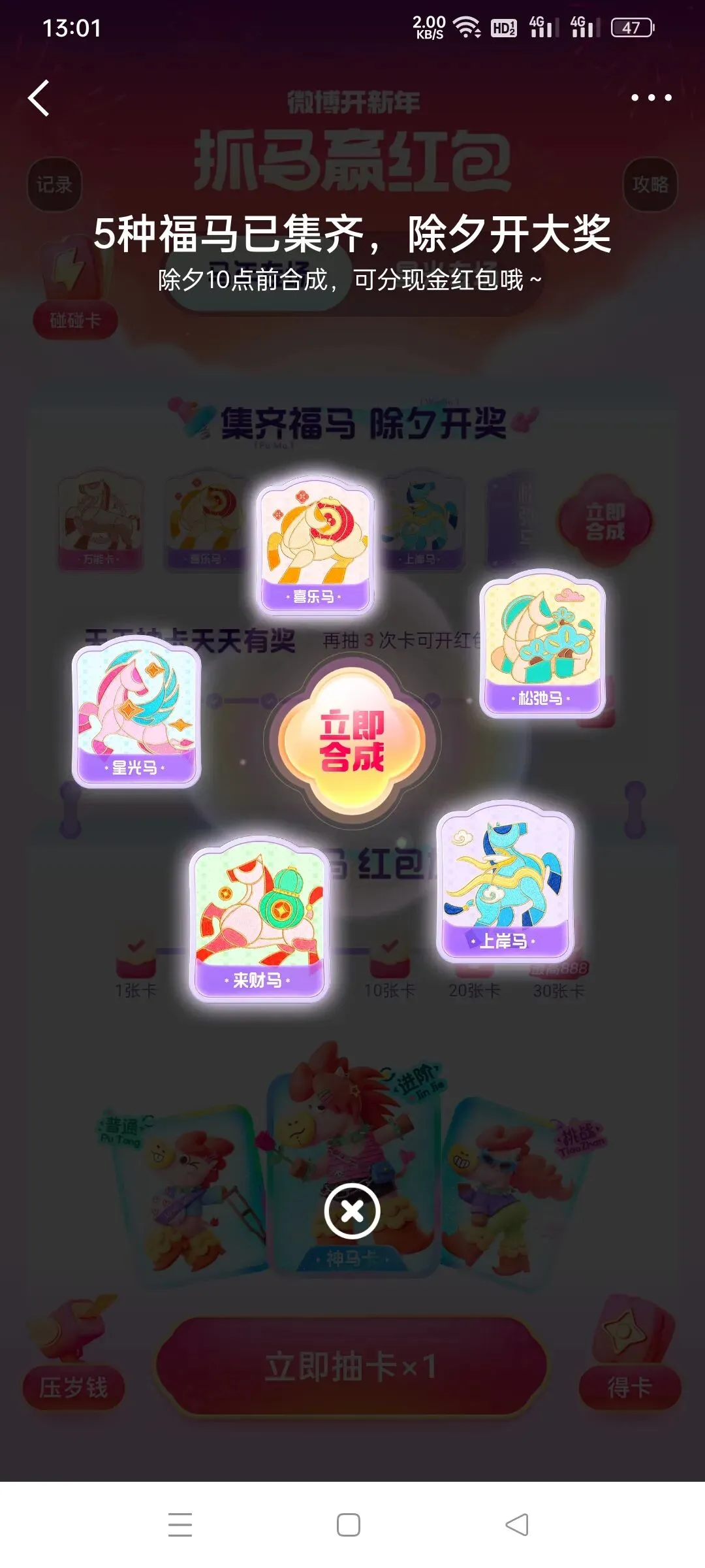 得需要在除夕的时候开奖,集齐完以后可以参与其他活动